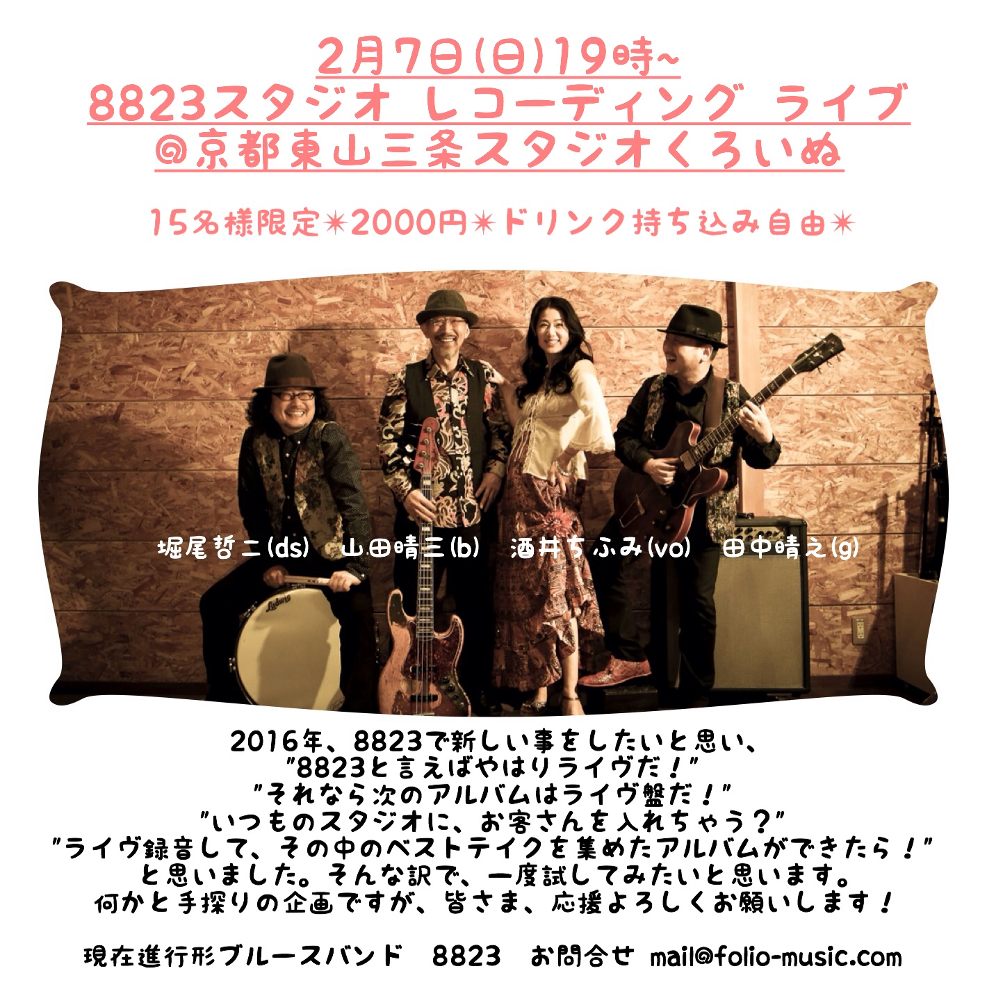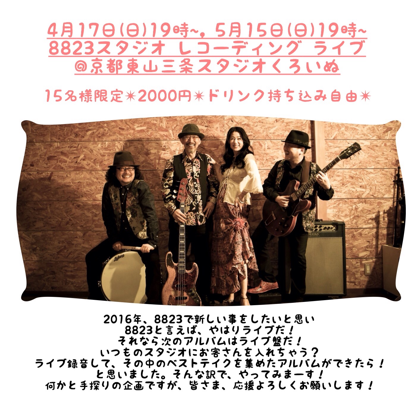 ◎6/3金8823スタジオレコーディングライブ@京都スタジオくろいぬ