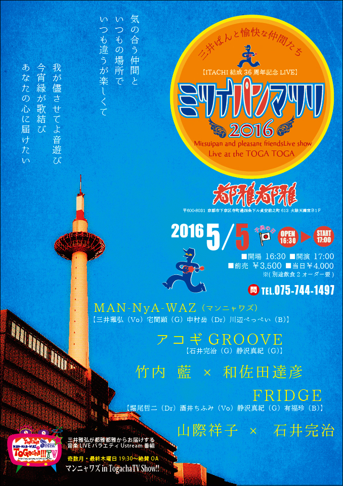 ◎5/5木フリッジ『ミツイパンマツリ』@京都都雅都雅