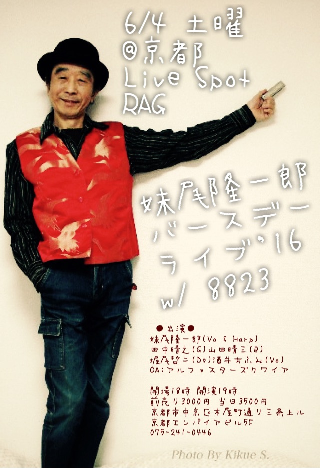 ◎6/4土妹尾隆一郎(Vo & Harp)バースデイライブ@京都都雅都雅