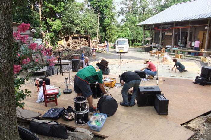 まずは、現地のスタッフと共に、ステージ設営に奮闘しました。