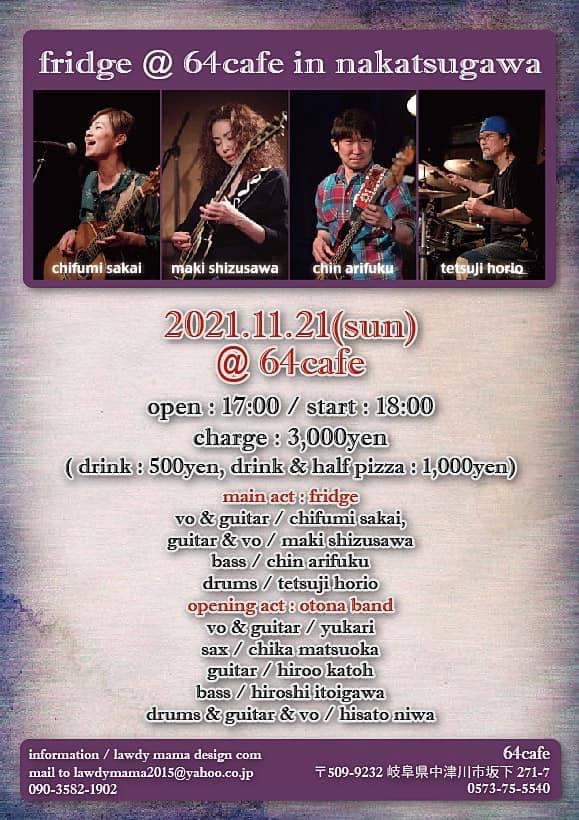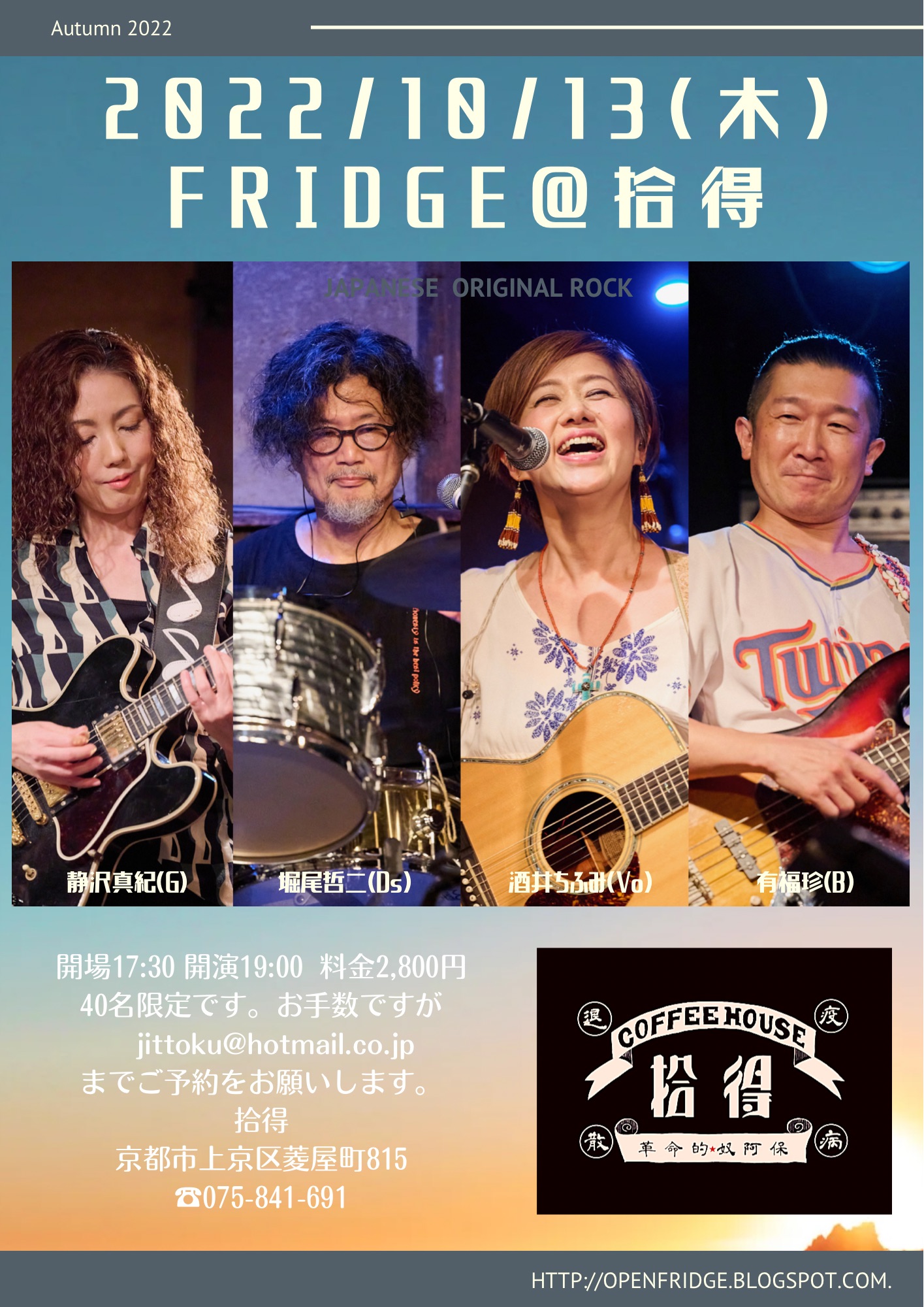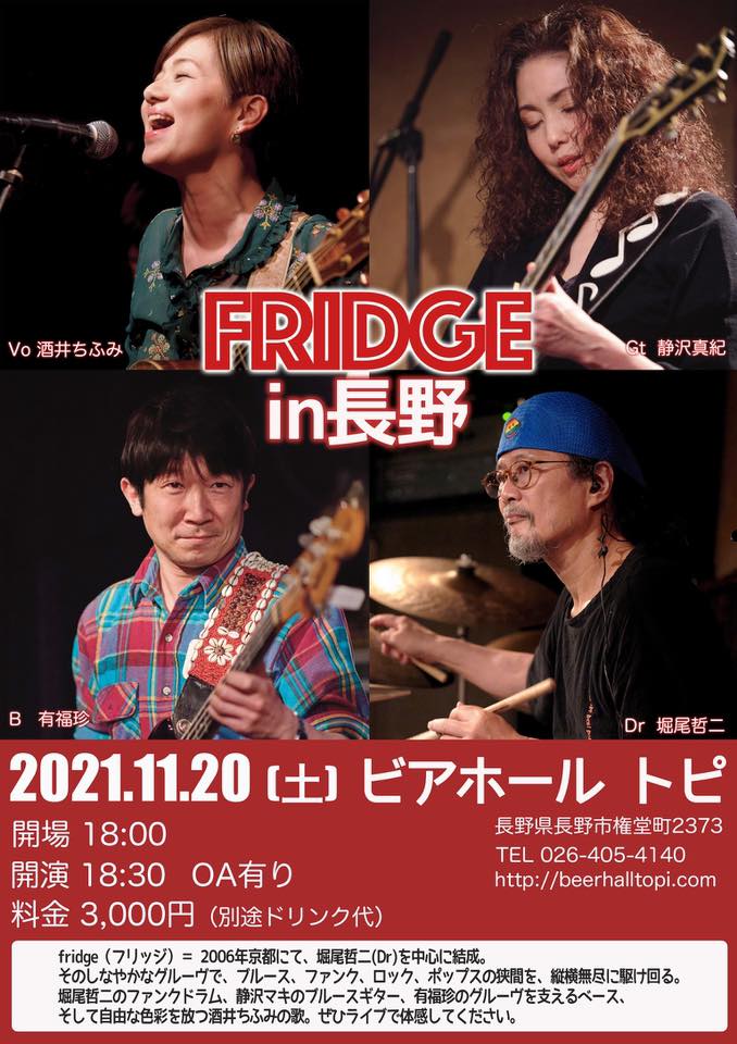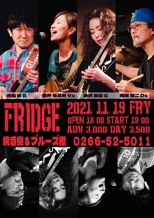FRIDGE/堀尾哲二(Ds)酒井ちふみ(Vo & Ag)静沢真紀(G)有福珍(B)
