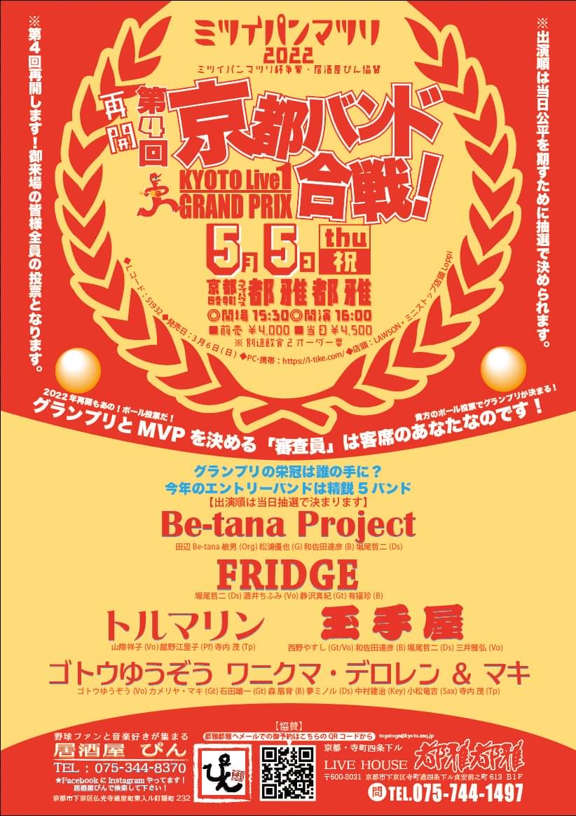 ● 5/5(木祝)FRIDGE『ミツイパンマツリ』@京都 都雅都雅