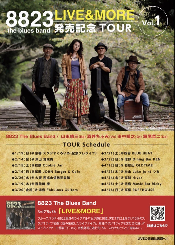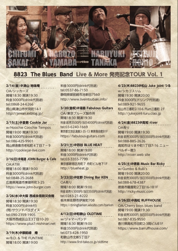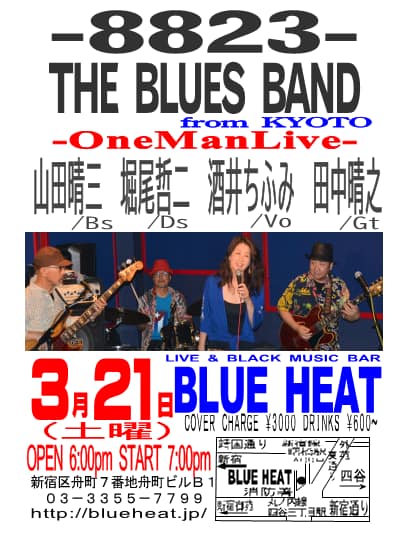 3/22(日)佐野 Dining Bar KENにて開催予定の 8823 新譜発売記念ライブは、マスターの若田部健さんが1/24に60歳の若さで急逝された事により、中止となりました。私達も残念でなりません。マスターのご冥福を心より御祈りします。