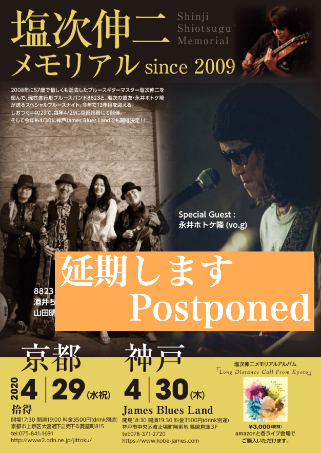 8823のライブ中止のお知らせ(4/12和歌山、4/23-26四国ツアー)