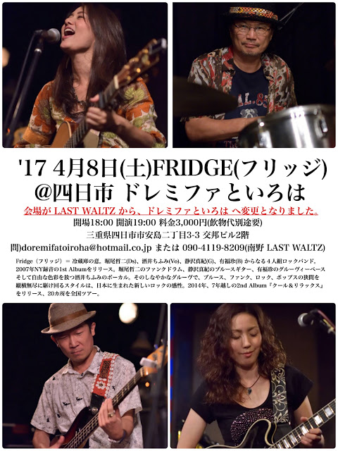 4/8土フリッジ四日市ライブですが、お店の都合により、会場がLAST WALTZから、ドレミファといろは に変更になりました。