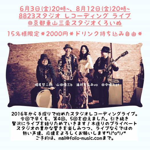 ◎ 8/12 金8823スタジオレコーディングライブ@京都スタジオくろいぬ
