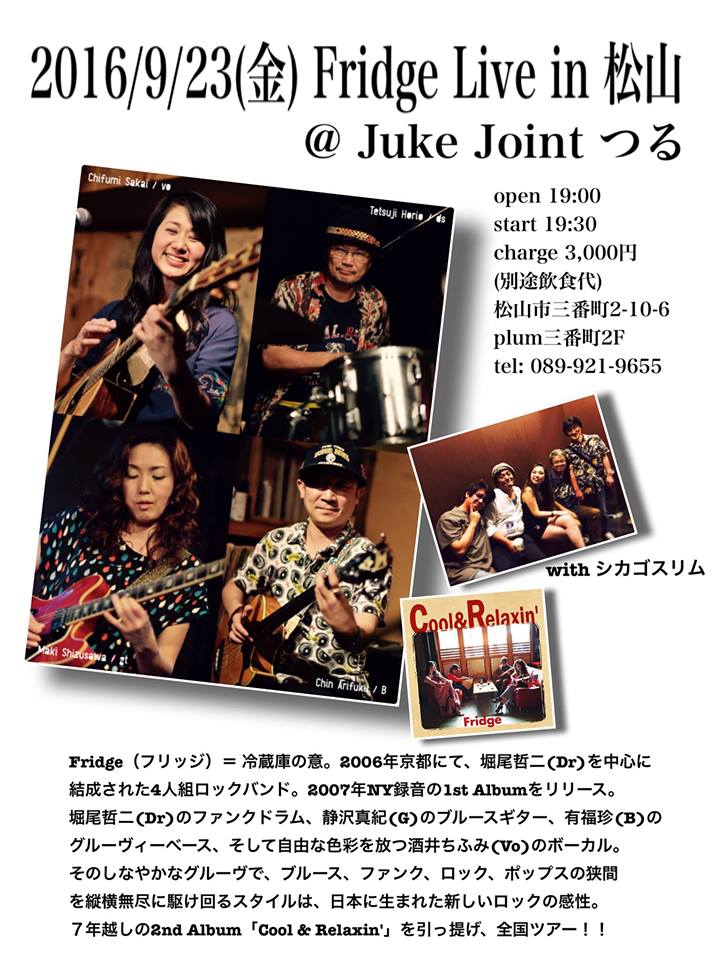 ◎ 9/23金 フリッジ@松山 JUKE JOINT つる