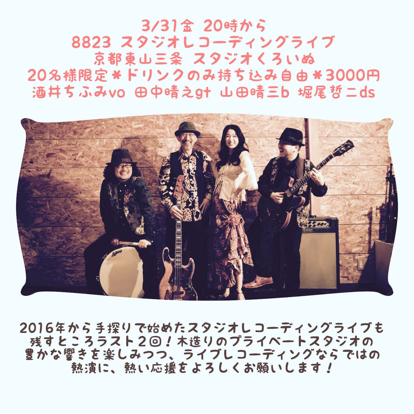 ◯3/31金8823スタジオレコーディングライブ@京都 スタジオくろいぬ